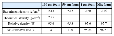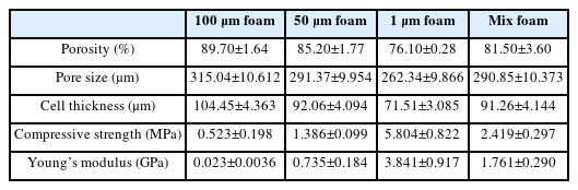 100 μm foam | 50 μm foam | 1 μm foam | Mix foam | |